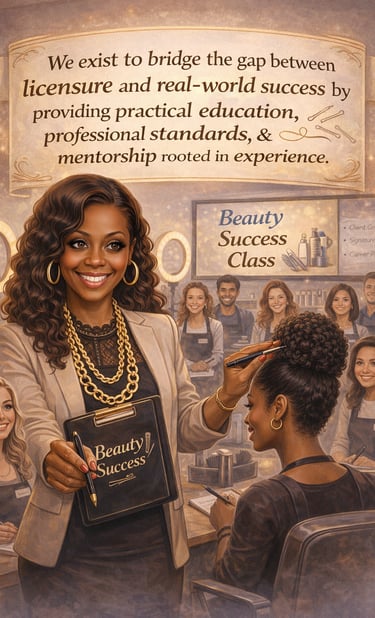 We help licensed beauty pros bridge the gap between cosmetology school to the salon floor. You will learn how to step into the industry polished, prepared, and profitable. Video classes via Zoom include: